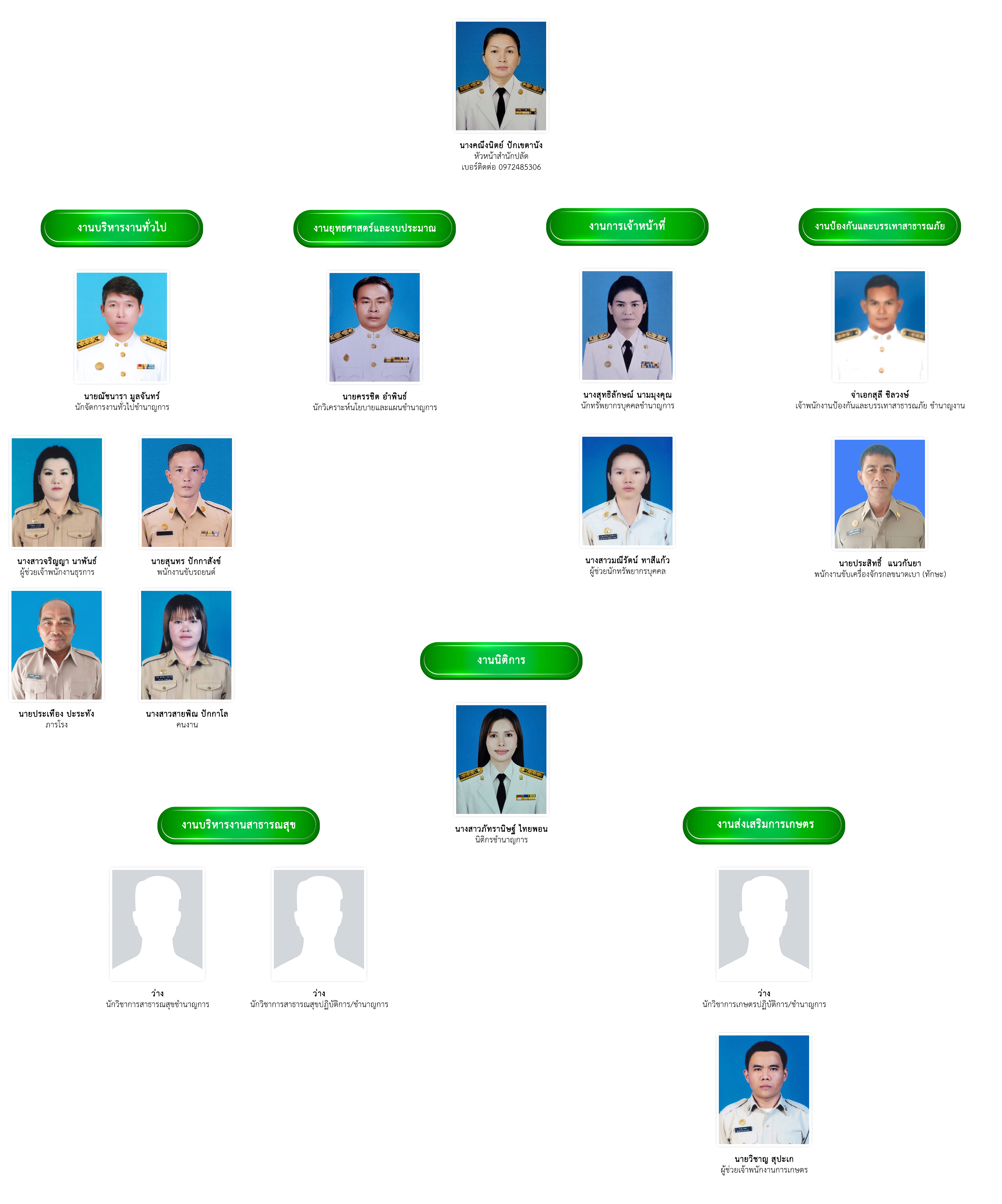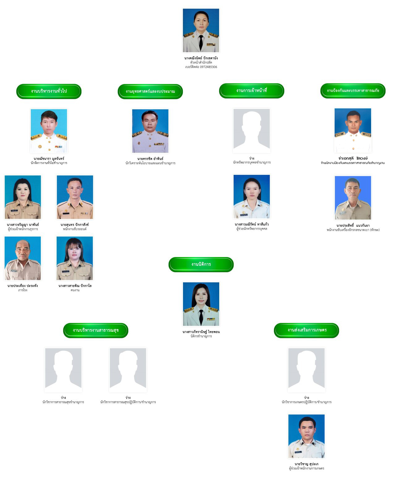 ภาระกิจสำนักปลัด มีหน้าที่ความรับผิดชอบเกี่ยวกับราชการทั่วไปขององค์การบริหารส่วนตำบล และราชการที่ มิได้กำหนดให้เป็นหน้าที่ของกอง หรือส่วนราชการใดภายในองค์การบริหารส่วนตำบลไว้เป็นการโดยเฉพาะ รวมถึงการกำกับดูแล และเร่งรัดการปฏิบัติราชการของส่วนราชการภายในองค์การบริหารส่วนตำบลให้เป็นไปตามนโยบาย แนวทาง และแผนงานการปฏิบัติราชการขององค์การบริหารส่วนตำบล ตลอดจนงานอื่นที่เกี่ยวข้อง โดยมีการจัดแบ่งส่วนราชการภายในออกเป็น 7 งาน คือ งานบริหารงานทั่วไป งานการเจ้าหน้าที่ งานยุทธศาสตร์และงบประมาณ งานนิติการ งานป้องกันและบรรเทาสาธารณภัย งานบริหารงานสาธารณสุข และงานส่งเสริมการเกษตร