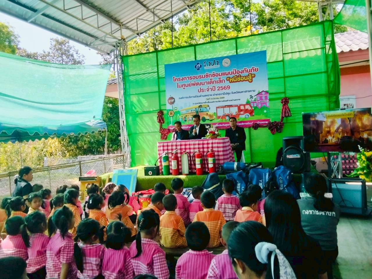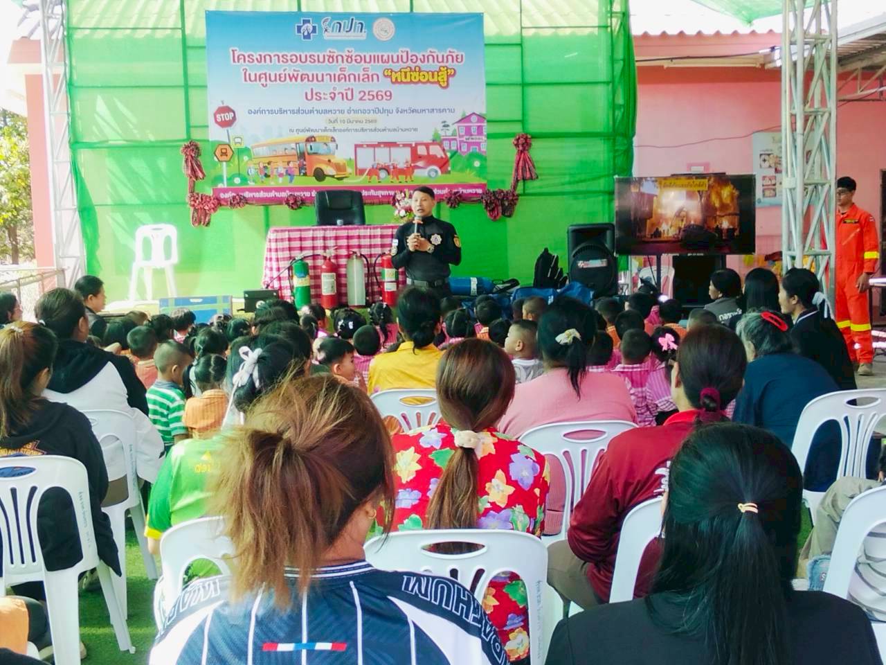 ภาพที่เกี่ยวข้อง โครงการอบรมซักซ้อมแผนป้องกันภัยในศูนย์พัฒนาเด็กเล็ก "หนีซ่อนสู้" ประจำปี 2569